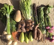 旬のお野菜がおまかせで届くセットです。80サイズのダンボールにそのときの野菜を詰めてお送りします。